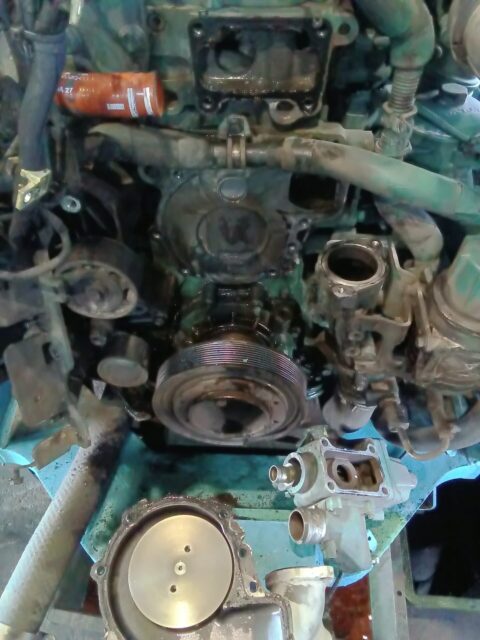 車両は三菱ロジスネクスト15tボルボエンジンになります、「サブタンクの水が減る」「エンジン周りから水が漏れてる」このような症状でご入庫頂きました。
