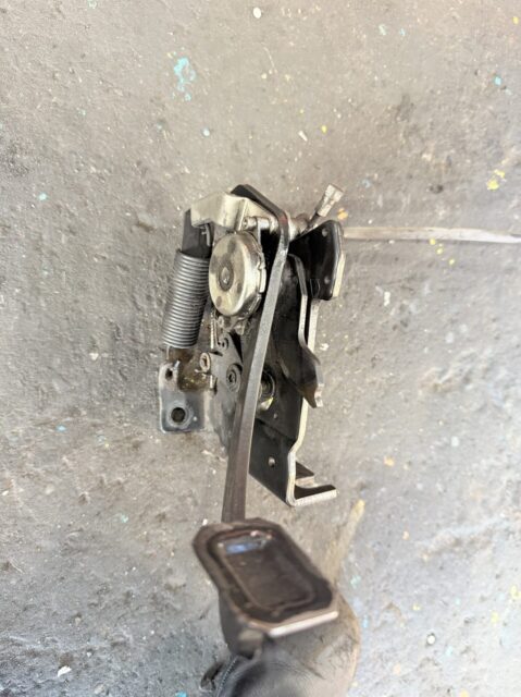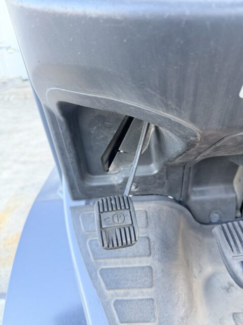 トヨタ製フォークリフトは下の写真のように標準でフットペダルタイプのパーキングブレーキが装備されてる事が多く