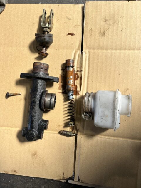 ブレーキマスターとは、ブレーキペダルを踏んだ力を油圧に変えて、各車輪のホイールシリンダ―へ伝える部品です。